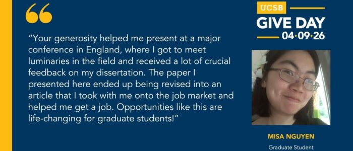 The History Department supports undergraduate and graduate research, events, and public engagement with history at UC Santa Barbara, the city of Santa Barbara and beyond. Consider joining us with a gift of any size!